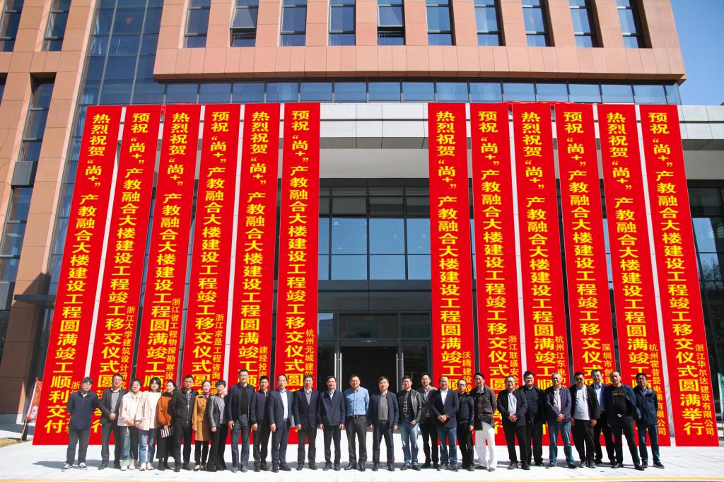 周必彧在仪式上讲话。他高度肯定了“尚+”产教融合大楼的建设成果,向参与工程建设的全体单位和人员表达了衷心的感谢。他指出,在学校第四次党代会即将召开之际,要以这次工程竣工移交为契机,进一步明确大楼功能定位、优化空间布局、深化产教融合、强化交流合作、促进创新创业,奋力使用好、维护好、管理好“尚+”产教融合大楼,使之真正成为学校高水平学科建设、高层次人才引进、高能级平台打造的集聚地,全面助推学校“双一流”建设。他要求,学校各部门要通力合作,做好后续如工程决算审计、竣工备案、财务决算、省及中央各级审计督查验收等一系列重要工作。同时,做好移交后的质保维保服务,以保证大楼今后的投用达到预期的效果,为学校的高质量发展贡献力量。