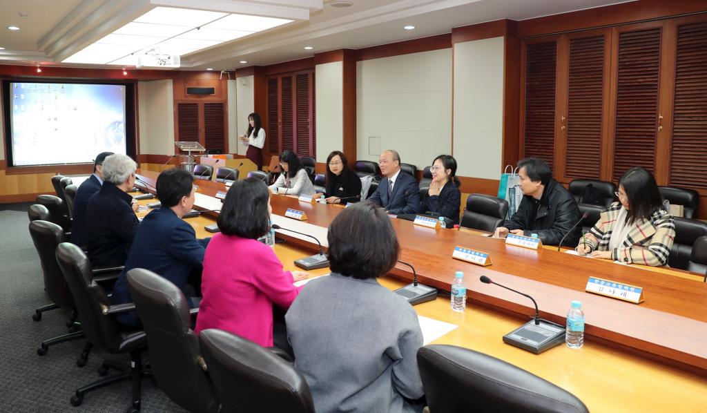 1月6日下午,陈文兴一行访问水原女子大学,与该校校长车宝淑、国际交流中心所长洪明秀、招生处长郑世均、教务处长朴政槿、服装设计系主任金景芽、美容艺术系李相恩会见。双方就12月水原女子大学访问我校时洽谈的产学研合作项目方案进行了进一步的深入沟通,并就2020年暑期正式启动该项目达成共识。郑世均重点介绍了水原女子大学服装设计、数字媒体、食品营养等方面的情况,交换了两校拓展本科生联合培养项目的设想,两校扩大交流、加强合作迎来新的契机。陈文兴表示,我校也将在政策和奖学金、资助等多方面大力支持双方的合作。最后,陈文兴与车宝淑续签了两校交换生协议。