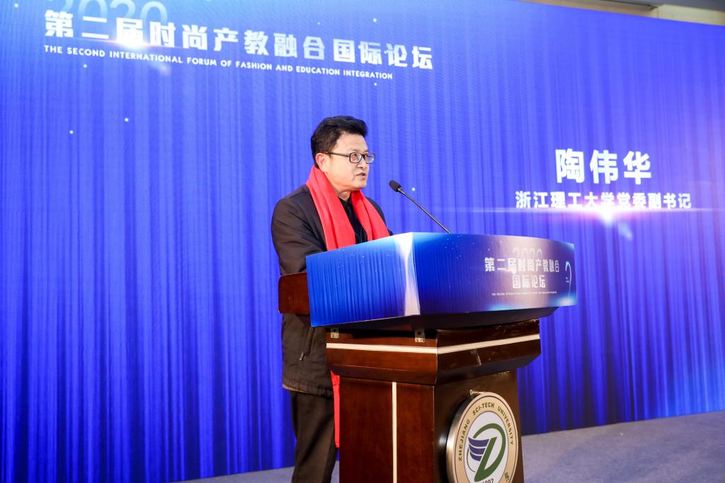 陶伟华致欢迎词。他代表学校向与会嘉宾的到来表达了欢迎与感谢,并简要介绍了理工的办学成果及特色。他指出,我校时尚学院在余杭经济技术开发区刚刚奠基,时尚产业及相关学科专业建设发展形势大好,面对新机遇,高校、企业和广大时尚产业有志之士创新创业恰逢其时、正当其势,必将大有可为、大有作为。此次国际论坛,希望大家充分交流,深入探讨时尚产业产教融合的发展趋势和合作大计,为推进“时尚产业产教融合”发展贡献更多智慧和力量。最后,他预祝论坛取得圆满成功。