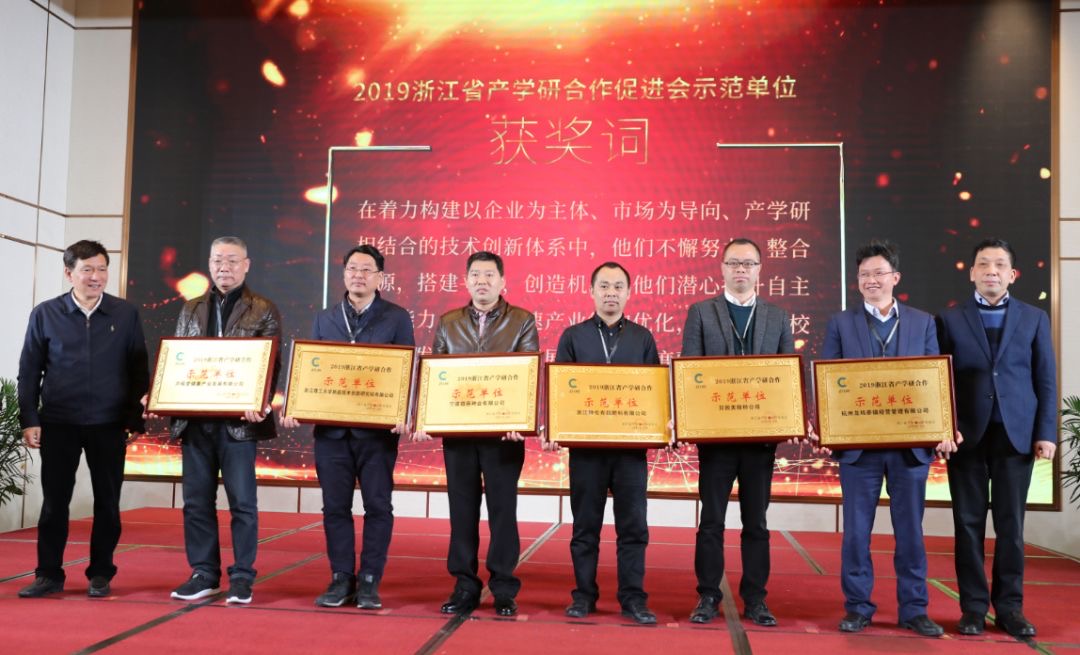 此次大会也是浙江省产学研界总结、表彰、学习、交流的一次盛会。会议表彰了2019年度在产学研合作、创新成果转化等诸多方面作出了重要贡献的先进企业和个人,经浙江省产学研界推荐和浙江省产学研合作促进会各专委会认真评审,其中由我校推荐的卓尚服饰(杭州)有限公司荣获浙江省产学研合作促进会企业创新奖,tyc33455cc太阳集团成网官方入口新昌研究院荣获浙江省产学研合作促进会企业进步奖,tyc33455cc太阳集团成网官方入口新昌技术创新研究院有限公司荣获浙江省产学研合作促进会示范单位,tyc33455cc太阳集团成网官方入口聚元众创空间荣获浙江省产学研合作促进会示范基地。此次共计颁出包括先进个人和企业、创新个人和企业、示范单位及示范基地等六个奖项。