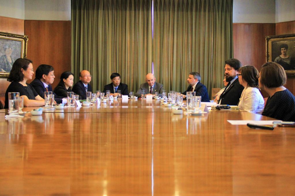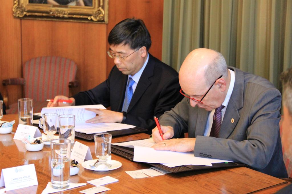 17日,代表团访问瓦尔帕莱索天主教大学,该校校长埃罗尔特吉与国际处、科技处、生物研究所、西语教学中心负责人参加了会谈。会上,双方分别介绍了各自学校情况,并就校际合作的形式与内容进行了初步商讨,签署了校际合作备忘录。双方决定,从生物学、法学等领域的学术交流开始,逐步形成可持续的合作关系,带动师生交流和合作研究的开展。