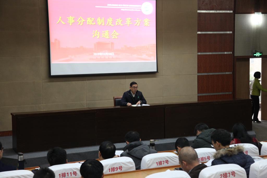 12月18日,我校在行政楼二楼报告厅、一楼报告厅组织召开了人事分配制度改革方案沟通会。副校长郜正荣出席大会,全体中层干部、各单位工会主席,各系系主任、教师党支部书记、教授代表,学院综合办主任等270余人参加会议。副校长郜正荣主持会议。