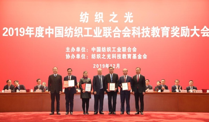 12月6日,“纺织之光”2019年度中国纺织工业联合会科技教育奖励大会在北京人民大会堂隆重举行。