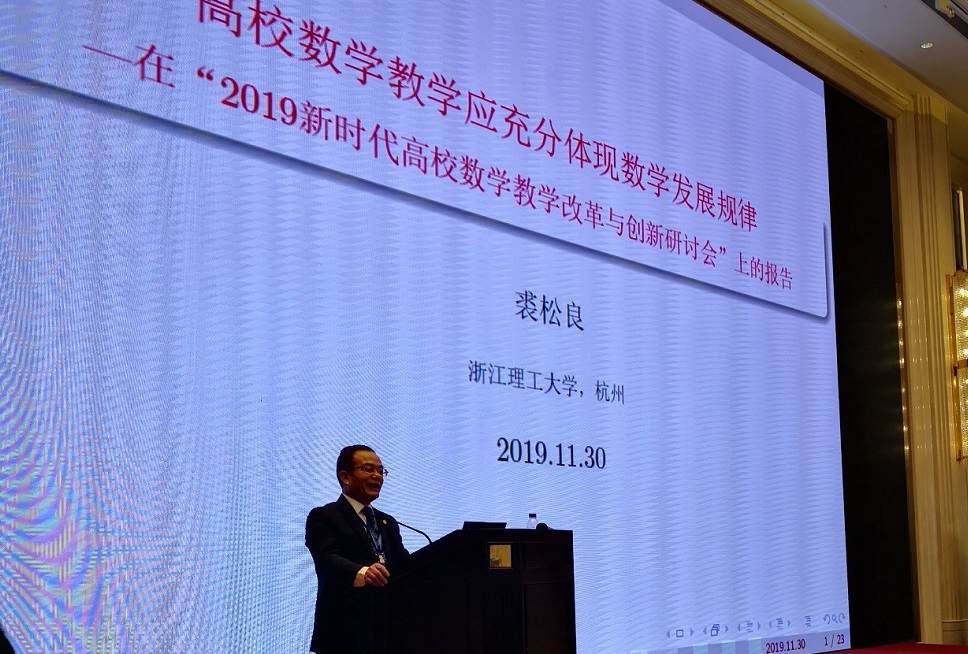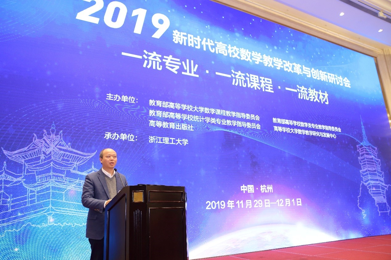 11月29日至12月1日,2019新时代高校数学教学改革与创新研讨会在杭州召开,本次会议由教育部高等学校大学数学课程教学指导委员会、教育部高等学校数学类专业教学指导委员会、教育部高等学校统计学类专业教学指导委员会、高等学校大学数学教学研究与发展中心和高等教育出版社共同主办,由我校承办。来自全国三百多所高校的九百余名代表参加研讨会。