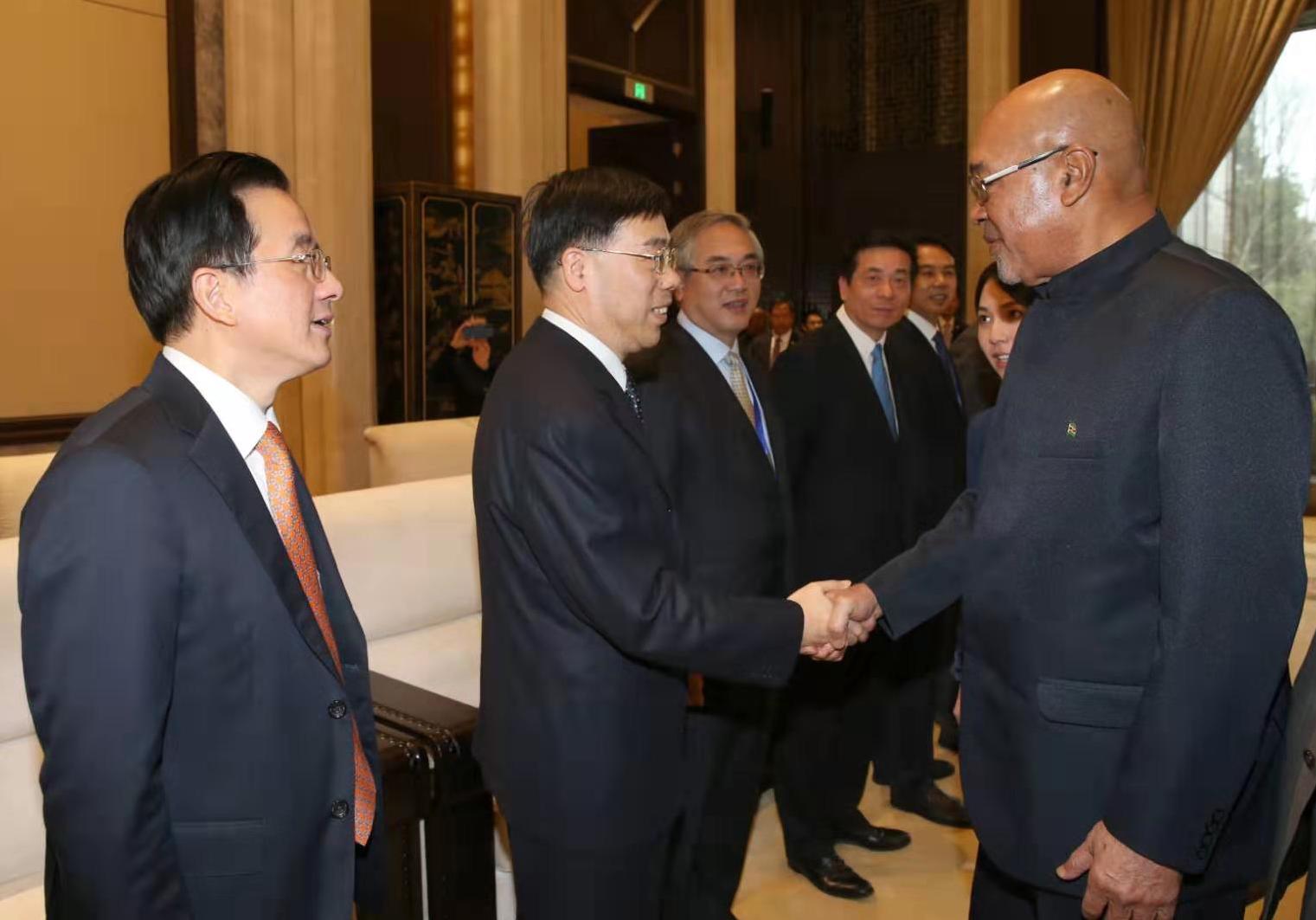 11月29日,苏里南总统鲍特瑟到访浙江。省委书记车俊、省长袁家军在杭州会见了鲍特瑟总统。