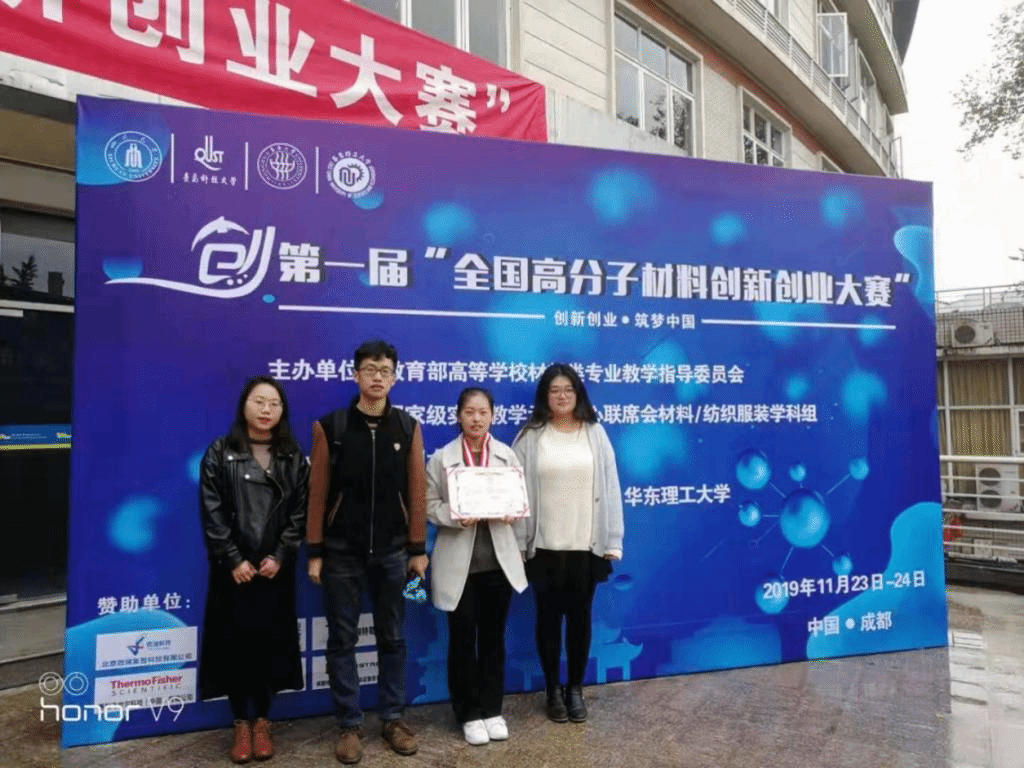 11月24日,由教育部高等学校材料类专业教学指导委员会、国家级实验教学示范中心联席会材料/纺织服装学科组主办的第一届“全国高分子材料创新创业大赛”终审决赛于四川大学落下帷幕。由吕汪洋副教授、陈文兴院士指导,钟慧恬、沈海斌、饶龙骏、高隽婷、陈怡等学子的参赛项目《太阳光驱动催化纤维高效降解水体中新型污染物》获得全国一等奖的佳绩。