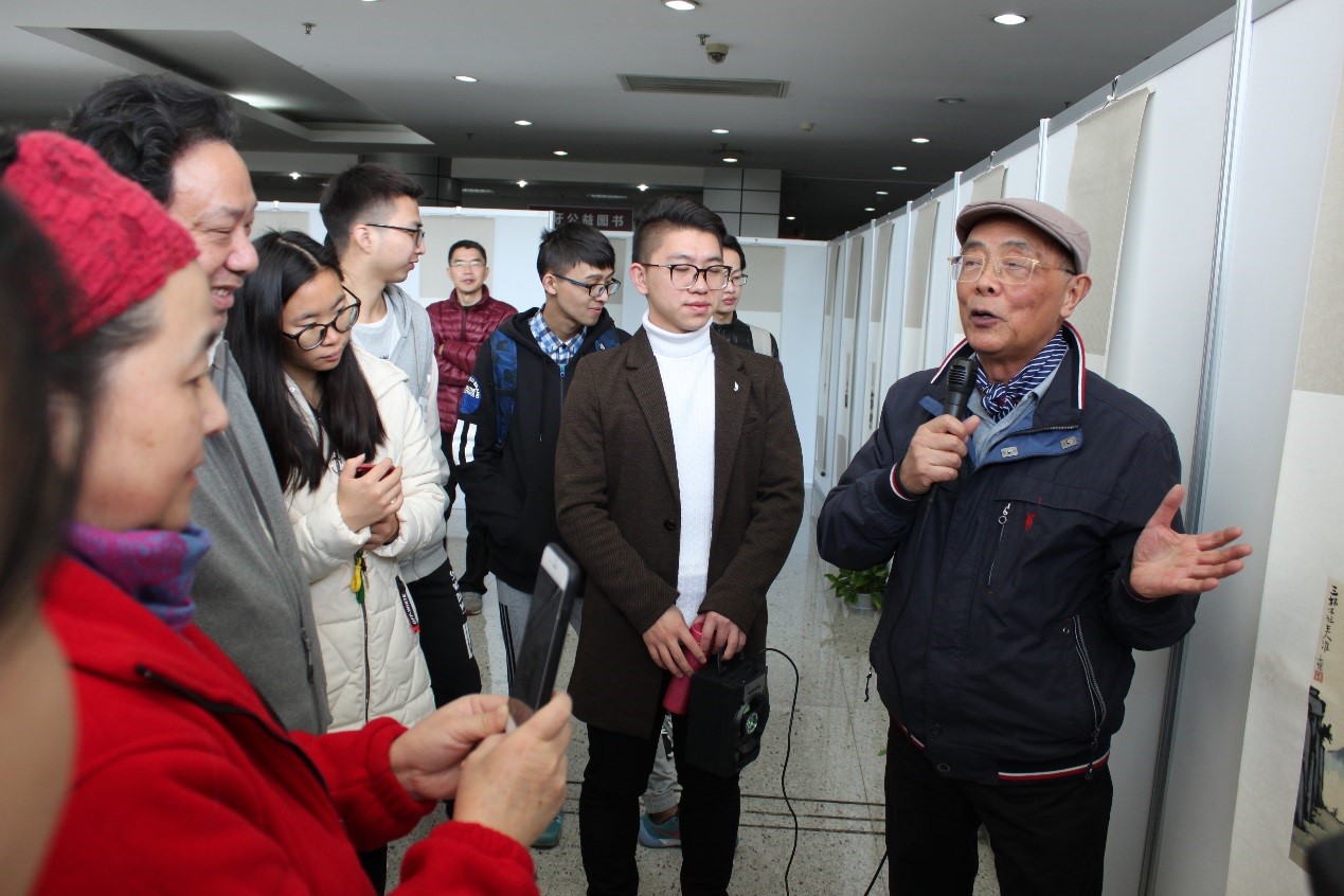 开幕式结束后,宋雪君先生亲自为大家解读展出的丰子恺漫画作品。下午,他还在图书馆举办了丰子恺专题讲座:《星河界里星河转——丰子恺和他的朋友们》,结合自己在外祖父身边耳濡目染的经历,详细生动地讲述了丰子恺的艺术生涯和艺术成就。