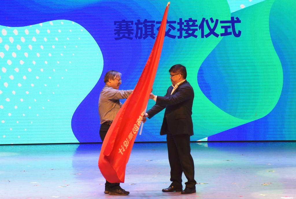 颁奖仪式上还举行了赛旗交接仪式。经过大赛组委会研究决定,下一届浙江省大学生服装服饰创意设计大赛的承办单位为嘉兴学院,孙旭东将大赛赛旗交接给了严从荃,严从荃在讲话中表达了将会积极筹备、抓好落实,将下一届比赛举办成功的决心。