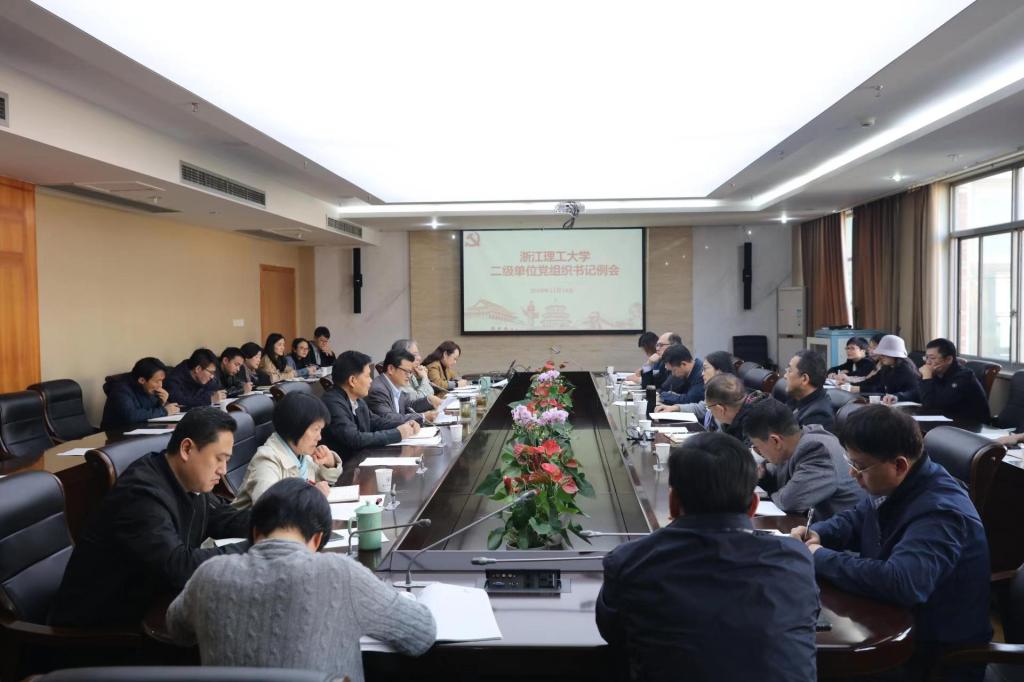 陶伟华通报了学校近期安全形势,指出各二级单位要进一步强化红线意识、底线思维,从制度建设、生命教育、心理疏导等多方面筑牢安全稳定的防线。他对党的十九届四中全会精神的学习贯彻进行了强调,希望各二级单位党组织提高思想认识和政治站位,从实现国家长治久安、全面建设社会主义现代化国家、实现中华民族伟大复兴的高度,深刻认识重大意义,推动完善学校规章制度,强化管理职能,提升管理效率,推进学校治理体系和治理能力现代化。他还对学校近期的招生工作、学科及文体竞赛、团学组织改革等工作进展情况进行了通报。