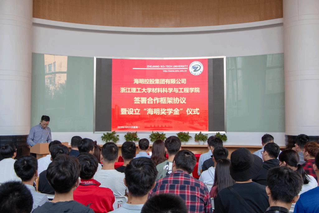 10月21日下午,我校材料科学与工程学院与海明控股集团有限公司签署合作框架协议暨设立“海明奖学金”仪式在众创空间举行。海明控股集团有限公司总裁梁铭,副总裁陈钇名,人力资源副总监范杭,副总裁助理、供应链副总监施鹏等企业代表参加签约仪式。我校副校长郜正荣,校党委委员、材料科学与工程学院院长姚菊明,党委办公室、校长办公室,人事处,校友工作办公室,材料科学与工程学院相关负责人出席签约仪式。签约仪式由材料科学与工程学院党委委员周照东主持。