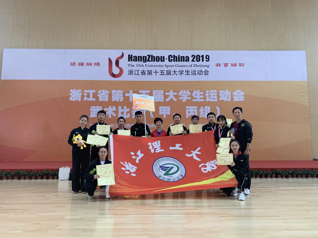 10月18-10月20日,浙江省第十五届大学生运动会武术比赛在杭州师范大学举行。我校运动员在比赛中获得1银、2铜、3个第四、3个第五、3个第七、1个第八,男子团体总分第四,女子团体总分第二的好成绩。同时,我校武术队被大会评为“体育道德风尚奖代表队”,尹燕强老师被评为优秀教练员,谢煜颖同学被评为“体育道德风尚奖”运动员。