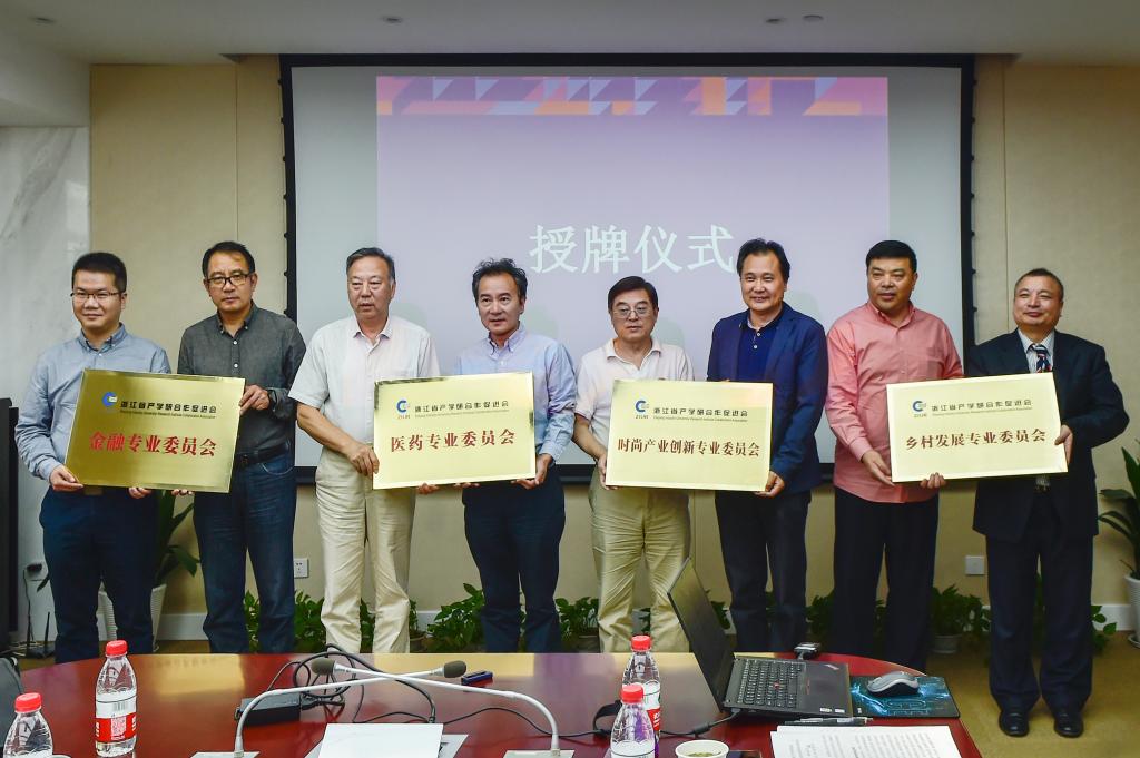 会上首先举行了时尚产业创新专业委员会、金融专业委员会、乡村发展专业委员会和医药专业委员会授牌仪式,其中军民融合专业委员会已于今年6月率先成立并授牌。