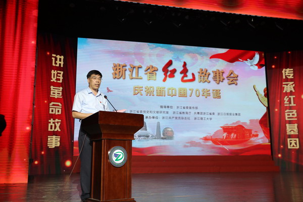 讲好革命故事,传承红色基因。在全国上下喜迎新中国成立70周年,我校积极开展“不忘初心、牢记使命”主题教育之际,9月25日,由省委宣传部指导,省委党史和文献研究室、省教育厅、团省委、浙江日报报业集团主办,我校和浙江共产党员杂志社承办的“浙江省红色故事会”大赛在学校隆重举行。来自全省的13个红色故事在会展中心大剧院进行最后的角逐。包括《浙江日报》、浙江卫视《浙江新闻联播》、光明日报客户端等均刊发了我校承办浙江省红色故事会大赛的新闻。其中《浙江日报》整版对红色故事会进行了报道,介绍了我校刚成立的“红色文化讲习馆”。