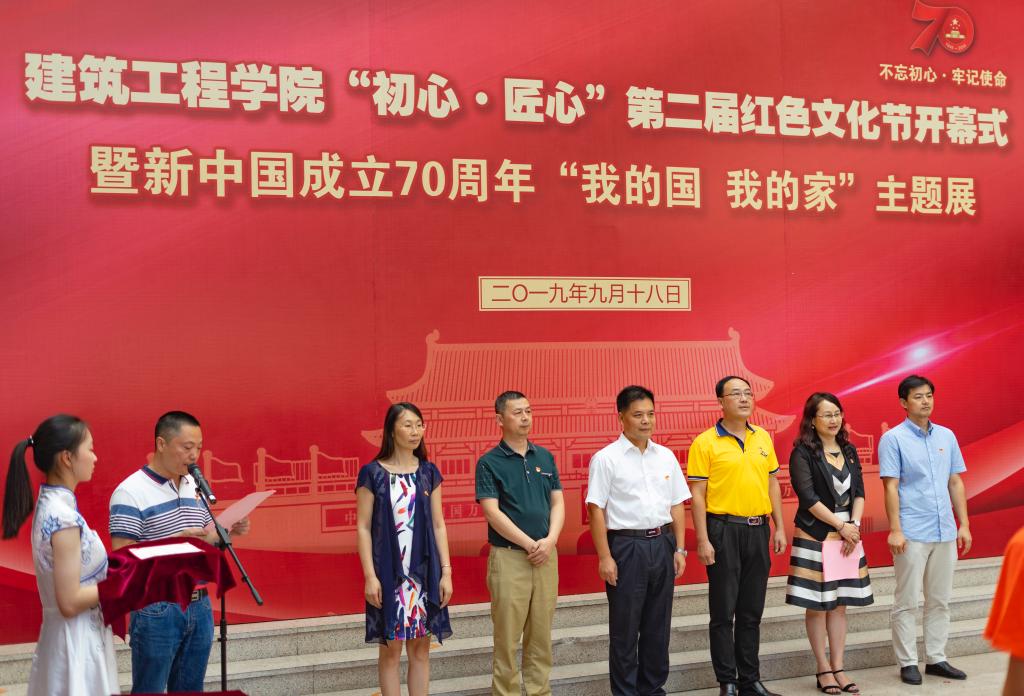 9月18日下午,建筑工程学院“初心 匠心”第二届红色文化节开幕式暨新中国成立70周年“我的国 我的家”主题展在学生活动中心一楼大厅举行。