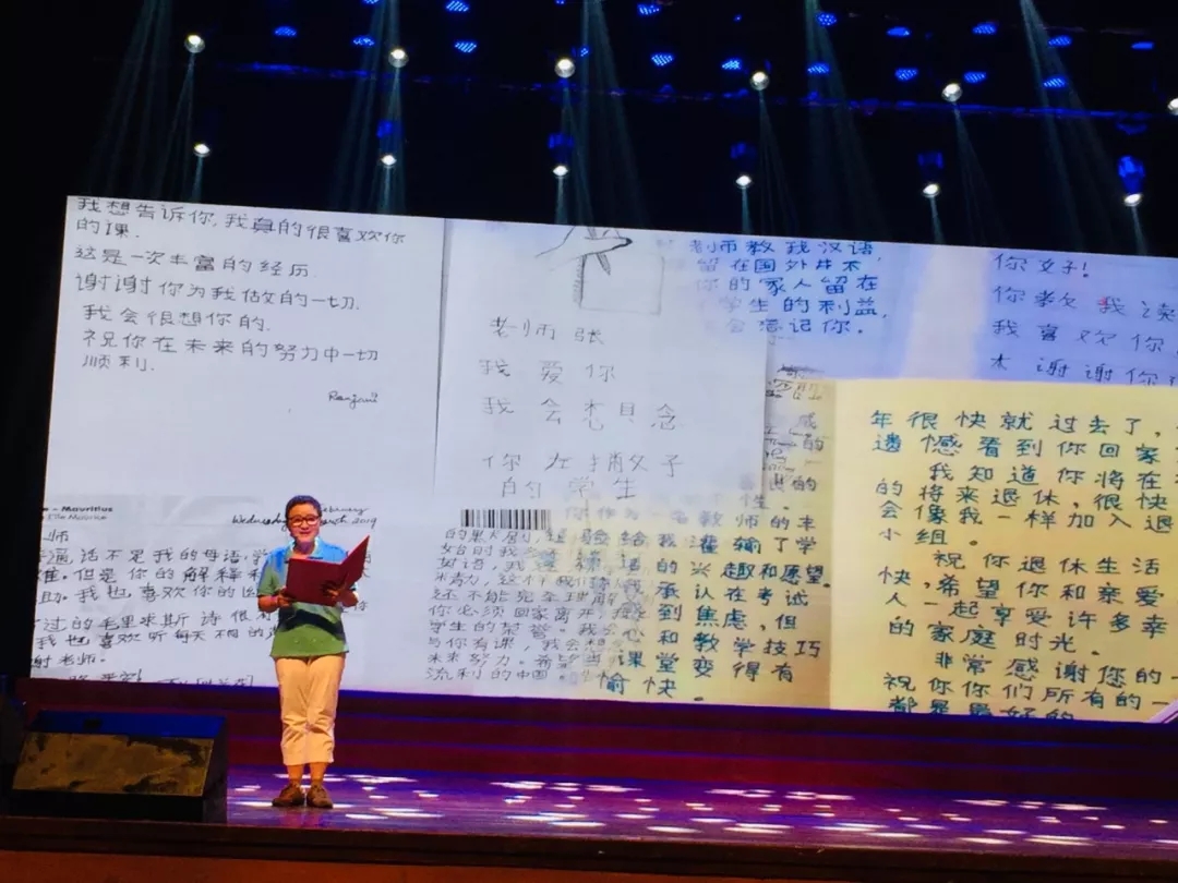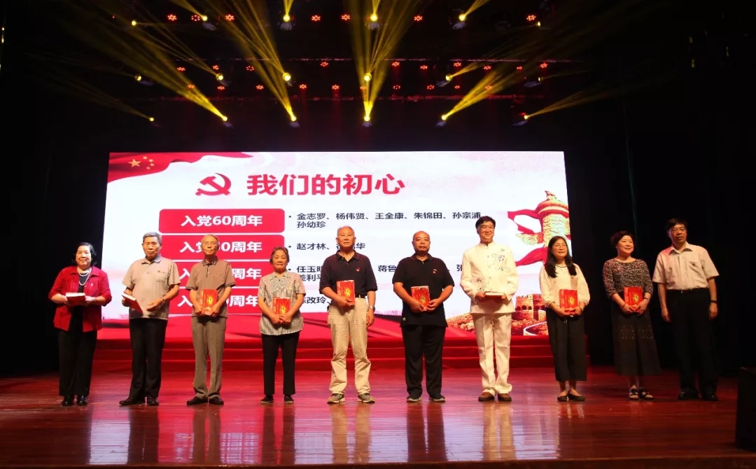 大会通过诗朗诵、舞台剧、歌舞合唱等多种艺术形式,再现了优秀党员师生相互传承、乐于奉献、敢于奋进的先进事迹和感人故事。一群入党60周年、50周年、40周年、30周年的老党员接受学校颁发的政治生日贺卡,用身体力行诠释了什么是坚定的信仰。退休党员教师张也频放弃休息,在年过花甲之际,克服种种困难、不远万里去到毛里求斯孔子学院任教,将汉语与中国文化播撒到异国他乡。满头银发的老院长康泰带领着2019年新发展的师生党员们对着党旗庄严宣誓,分享入党的初心故事。为了理想追梦却离开家人,为新中国的核试验横空出世,奉献着青春和热血的“两弹元勋”邓稼先的感人故事。这些直击灵魂的榜样人物,深深地打动了台下师生党员的心,让很多人不禁眼眶湿润。此外,我校师生还共同演绎了《我的祖国》。