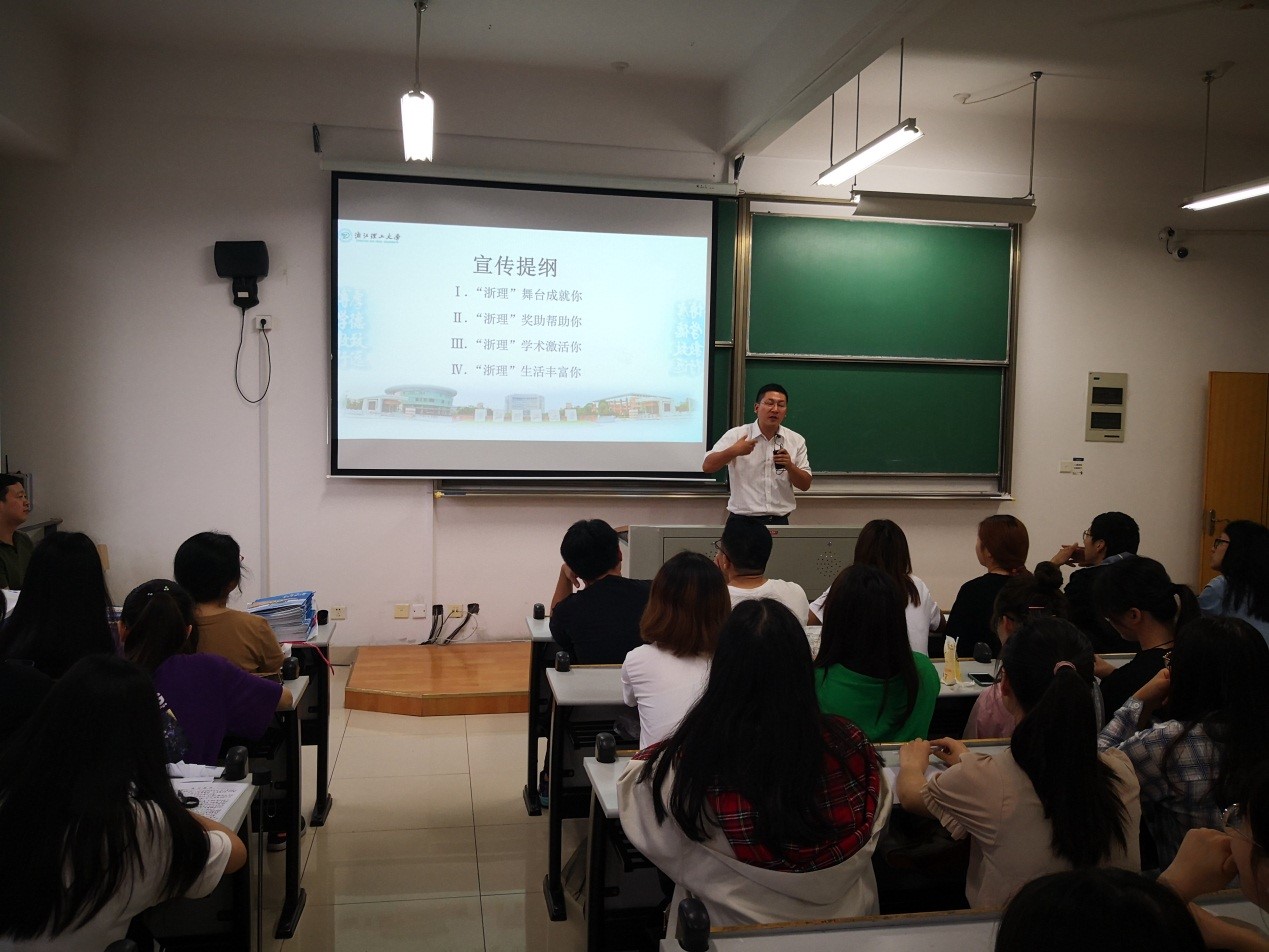 接着,我校各学院有关负责人和学科老师分别前往对应学院和专业开展研究生招生宣传工作。宣传人员结合学校办学情况、本院学科专业特色优势、师资队伍、研究生培养条件、招生专业目录、奖助体系等进行宣讲,宣讲后与学生进行面对面交流,并分发了研招宣传资料。
