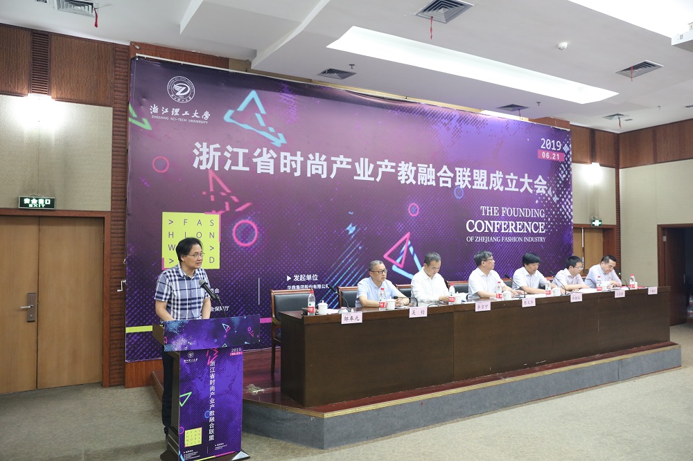 6月21日下午,由tyc33455cc太阳集团成网官方入口、浙江华鼎集团联合发起的浙江省时尚产业产教融合联盟成立大会在我校召开。