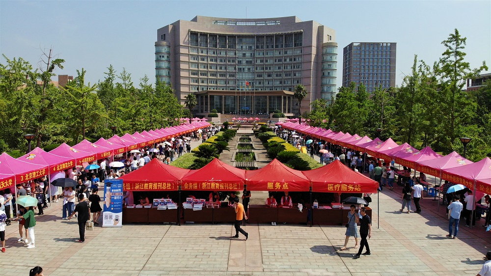 为做好2019年新高考招生录取工作,满足浙江省广大考生填报志愿、选专业选高校、了解高校招生权威信息的需要,给省内外高校提供规范的招生宣传平台,由浙江省教育考试院主办,杭州市教育考试院协办,浙江教育报刊社、浙江日报、中国教育在线、我校承办的浙江省2019年新高考招生志愿填报咨询会在图书馆前世纪广场召开。来自省内外200多所高校参加了本次咨询会,9000余考生及家长到现场咨询。