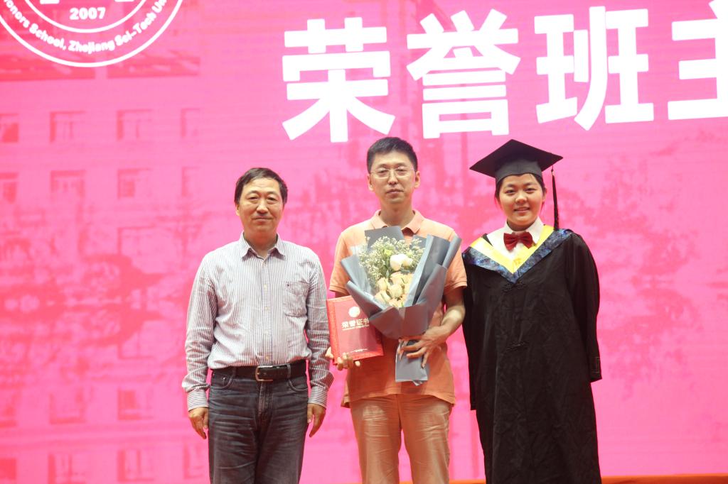 学位授予仪式后是学院毕业典礼,典礼围绕“成长·感恩·梦想”主题展开。首先是各实验班班主任寄语毕业生,他们肯定了班级四年建设成果和同学们的四年成长历程,勉励同学们在未来的人生道路上不要退缩,要敢于面对,表达了对毕业生们“常回家看看”的期待。随后,学院为各班主任授予启新“荣誉班主任”称号,毕业生们用鲜花表达了对班主任四年来悉心指导和真情付出的诚挚感谢;学院领导和班主任一起为各班获启新“荣誉学员”的学生颁发了象征着他们四年成长和收获的荣誉奖杯和证书。