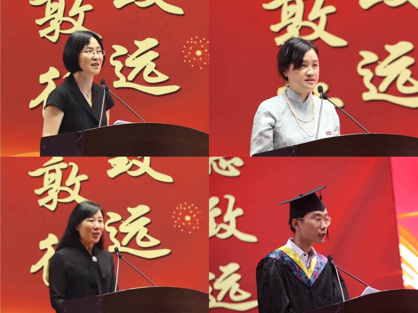 校十佳大学生、省优秀毕业生张力代表毕业生发言。他和同学们分享了自己对“温度”、“态度”、“深度”三个词的理解和体会,并表示将谨记“厚德致远,博学敦行”的校训,和全体毕业生们一起以积极昂扬的热情和刚健勇毅的态度,努力创造属于自己的精彩人生。