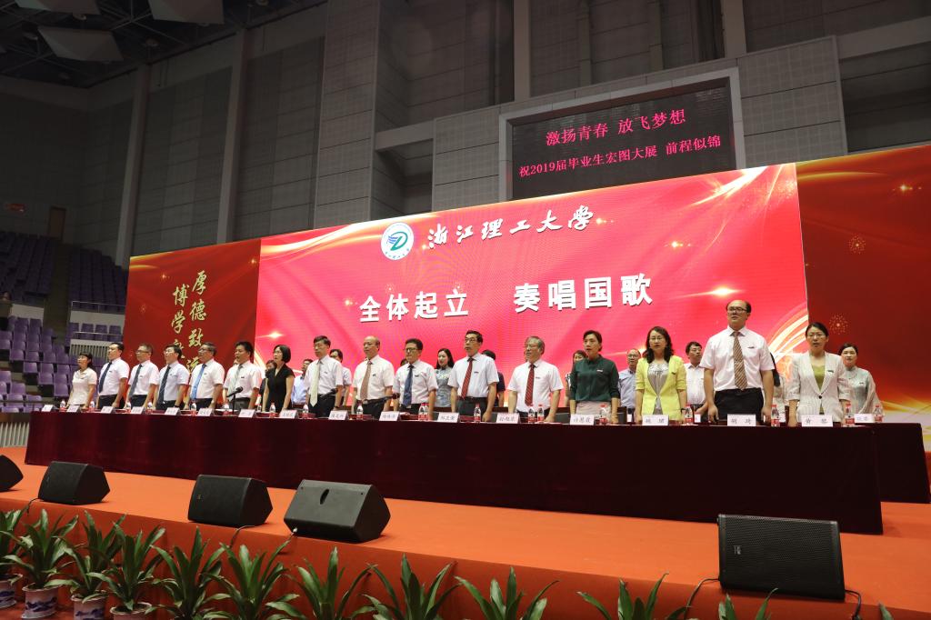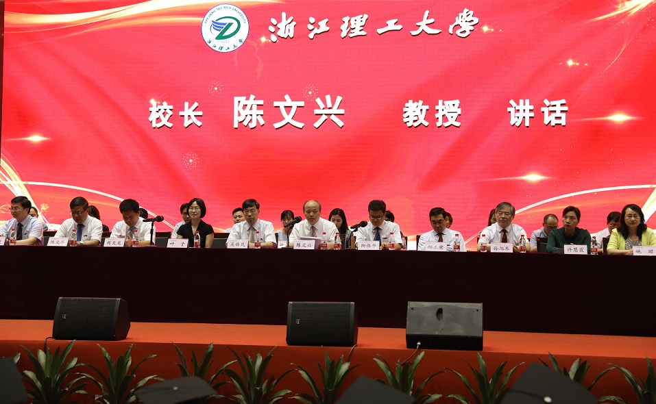 陈文兴作了题为《初心永驻 凯歌前行》的讲话,他代表学校向毕业生们表示最热烈的祝贺和最美好的祝愿,向各位家长、教师和校友们的辛勤付出表示崇高的敬意和衷心的感谢。他指出,同学们面临着新时代难得的建功立业的人生际遇,也有着施展才华、竞展风采的广阔舞台,希望同学们勇敢担当起“天将降大任于斯人”的时代使命。他就“成为怎么样的人”向全体毕业生提了三点寄语。一是希望同学们做一个有执着梦想的人。只要胸怀一股激情、一种志向,脚踏实地,砥砺前行,就能为国家的强大和民族的复兴贡献自己的力量。二是希望同学们做一个有责任担当的人。鼓励大家倾听自己的心声,响应时代号召,服务社会需要,主动担当作为,在火热的青春中放飞人生梦想。三是希望同学们做一个有坚韧意志的人。他用我们毕业生的切身事例证明,只要想做,愿意坚持,成功其实没能想象的那么难。最后,他指出,今年正值新中国成立70周年,希望同学们坚守初心,牢记使命,从浙理起步眺望世界,用时间和汗水浇灌梦想,用耐心和坚持收获希望。