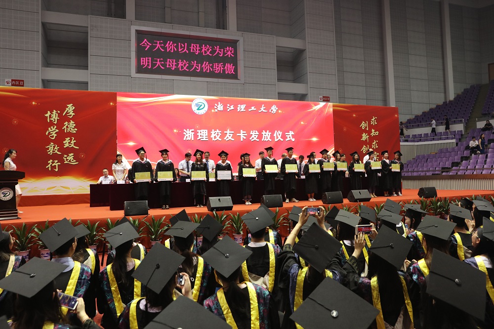 毕业典礼在庄严的国歌声中拉开序幕,周文龙宣读了2019届省级优秀毕业生、校级优秀毕业生名单,陶伟华宣读了参加2019年新疆专项计划和研究生支教团的学生名单,主席台就座领导分别为受表彰学生颁发荣誉证书,同时也为各学院2019届校友联络员代表颁发专属校友卡。