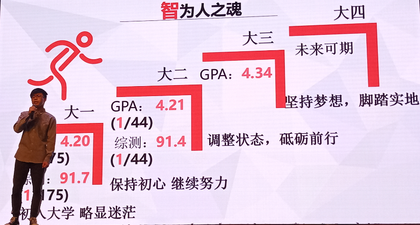 经学院推荐、初赛选拔,14名品学兼优的家庭经济困难学生自信坚定走上舞台,与在场观众分享他们不懈奋斗的青春励志故事。立志成为“工厂医生”,为承担不起医药费用的人们减轻病痛的逐梦女孩徐梦媛;严于律己、追求卓越,已收到八所高校保研资格的高晓勰;突破局限、不向命运低头的逆风飞翔者李莉……生活的困顿没有阻挡追梦的决心,坎坷的成长经历成了他们向命运抗争动力,他们用朴实的语言讲述不平凡的故事,用拼搏与奋斗创造不了一样的风景。现场互动评上,同学们感慨“好励志,感动,我也要努力向他们看齐。”