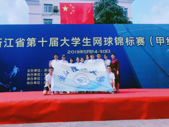 5月24–29日,浙江省第十届大学生网球锦标赛(甲组)在台州临海市万祥网球学校举行。我校网球队获得男子团体亚军,女子团体第七名,混合双打冠军,男子单打亚军,女子单打和女子双打第七名的佳绩。我校代表队获“体育道德风尚奖”的荣誉,教练员李文平被评为“优秀教练员”。