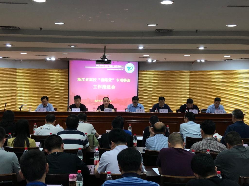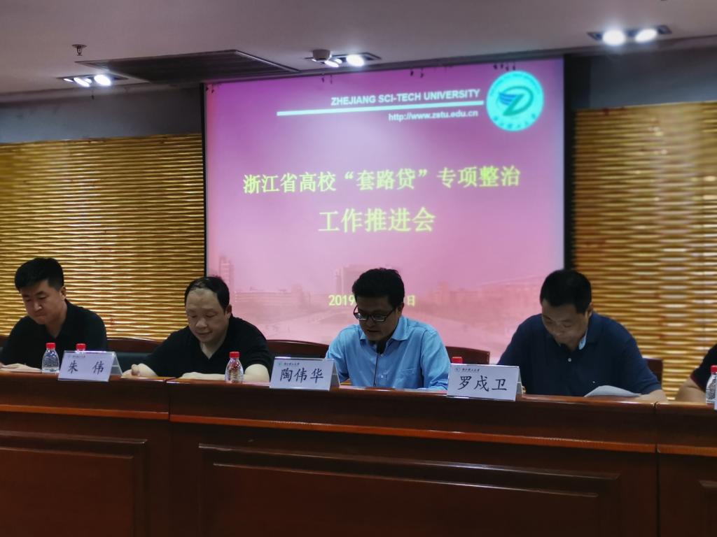 5月17日下午,浙江省校园“套路贷”专项整治工作推进会在我校行政楼一楼报告厅举行。校党委副书记陶伟华、省委政法委扫黑办主任罗戌卫、省教育厅校园安全处副处长朱伟等相关部门领导出席了会议。全省40余所高校的保卫处处长或学工部部长参加了会议。会议由省教育厅校园安全处副调研员马骏主持。