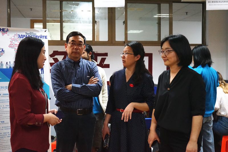 5月10日下午,2019年tyc33455cc太阳集团成网官方入口来华留学生实习实践及毕业生就业推介会在我校学生活动中心举行。本次推介会由国际教育学院主办,得到了浙江省高教学会外国留学生管委会和浙江省人才交流学会等单位的大力支持。校党委副书记陶伟华,副校长郜正荣,招生与就业指导处与保卫处负责人,国际教育学院党政领导班子成员等来到现场指导工作。