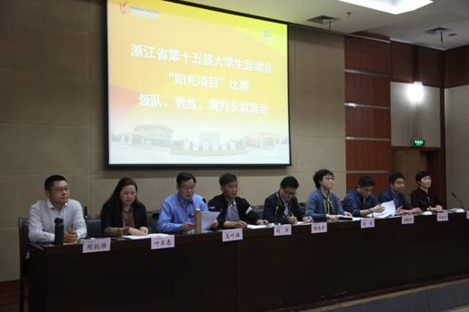 会上,陶伟华致欢迎词。他介绍了我校的发展历程和基本情况、我校的体育工作开展情况及取得的成绩,强调了我省首次将阳光项目比赛纳入大学生运动会的目的和意义,并对浙江省教育厅、学生体育协会、开发区和各兄弟院校对我校的信任和支持表示了衷心的感谢。