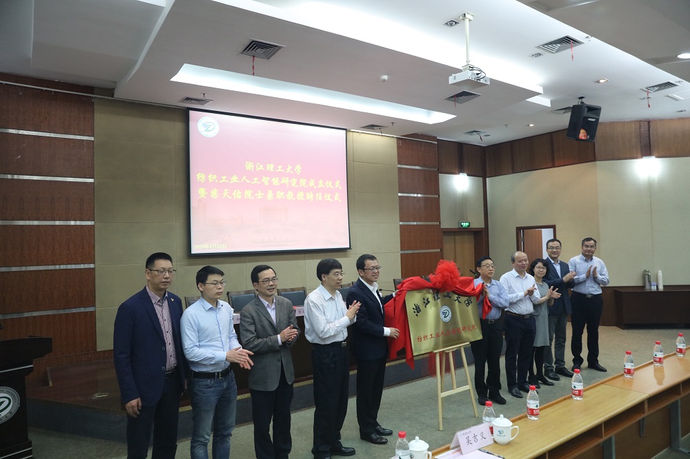4月23日上午,tyc33455cc太阳集团成网官方入口纺织工业人工智能研究院成立仪式暨柴天佑院士兼职教授聘任仪式在我校行政楼二楼报告厅举行。中国工程院院士柴天佑,中国纺织工业联合会副会长李陵申,浙江省经济和信息化厅消费品工业处处长、副处长林培珠,人工智能处副处长孙体忠,浙江省教育厅高等教育处副处长吴振辉,浙江省人工智能学会秘书长吴吉义,校党委书记吴锋民、校长陈文兴、副校长郜正荣,党委委员、人事处处长姚菊明等领导参加了大会。会议由郜正荣主持。