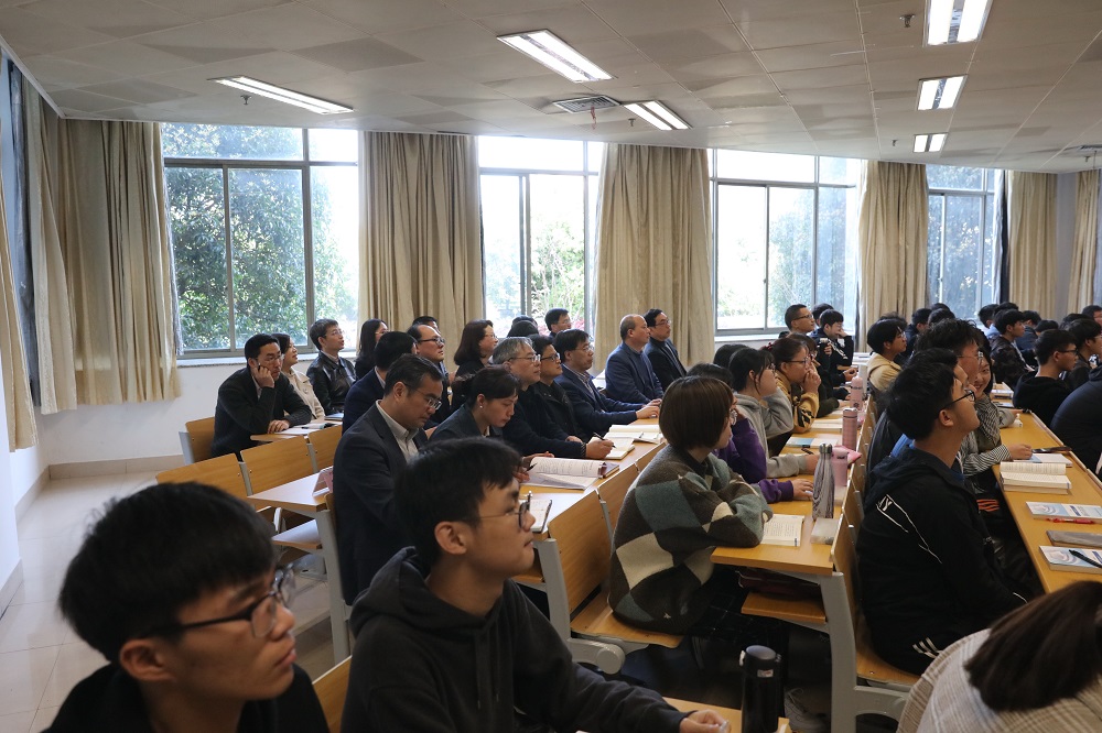 听课结束后,随即在马克思主义学院组织召开了教师座谈会,校党政领导班子成员和党校办、宣传部、学工部、教务处、教师发展中心负责人及马克思主义学院全体教师参加,马克思主义学院院长渠长根和郑显理、王艳娟两位思政课教师,以及党委委员、人事处处长姚菊明,教务处处长盛清分别围绕马克思主义学院发展情况和建设规划、增强思政理论课教师使命感和责任感、课程改革实践和科学研究、加强思政课教学队伍建设和师资保障、加强教学改革和课程管理等主题先后发言。