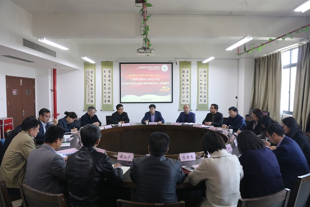 为进一步认真学习贯彻落实习近平总书记在学校思政课教师座谈会上的重要讲话精神,4月1日上午,我校召开校党委理论学习中心组(扩大)会议,以现场听课和召开座谈会方式,全体校领导班子成员和相关职能部门负责人与全体专职思想政治理论课教师一起,共同专题学习贯彻习近平总书记在学校思政课教师座谈会上的讲话精神。
