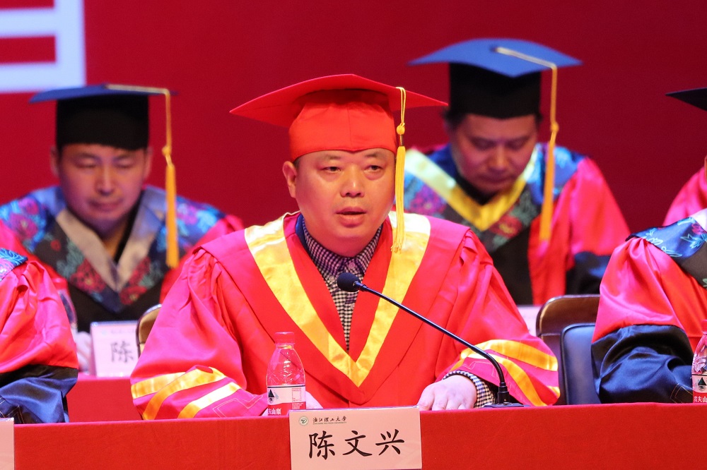 最后,校学位委员会主任、校长陈文兴作了题为《激扬青春,以实干成就美好未来》的讲话。他代表学校向圆满毕业、即将踏上人生新征程的同学们致以最热烈的祝贺,并向为了同学们的成长辛勤付出的老师、管理服务人员和家长表示衷心的感谢!他就如何成就美好未来向全体毕业研究生提出了三点寄语:一是砥砺家国情怀,与祖国同发展。希望同学们紧扣时代的脉搏,将家国情怀作为理工的精神基因,把自己的成长与家庭、民族、国家乃至整个人类的命运紧密结合在一起,与时代同呼吸,与国家共命运,担负起历史和时代赋予的使命,为祖国发展贡献力量。二是坚持知行合一,用奋斗书写精彩。希望同学们把勤奋学习作为青春远航的动力,让增长本领成为青春搏击的能量,扎根中国大地,在新时代的舞台上以实干体现担当,用勤学练就本领,在奋斗中书写属于自己的精彩人生。三是磨练意志品质,与青春相伴前行。希望同学们在未来的日子里,保持乐观向上的人生态度,坚持强健体魄,历练心理素质,正确对待成败得失,使顺境逆境成为人生的财富。最后,陈文兴指出,行动撑起梦想,实干成就未来、赢得未来。请同学们牢记家国使命和母校嘱托,在拼搏的青春中成就事业华章,在不懈奋斗中书写精彩人生。