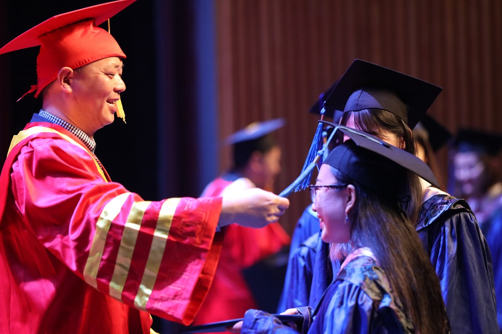 毕业典礼结束后,陈文兴为博士、硕士学位获得者逐一扶正流苏、颁发学位证书,并合影留念。学位授予仪式在庄重热烈的氛围中结束,为广大毕业研究生留下了深刻而又美好的记忆。