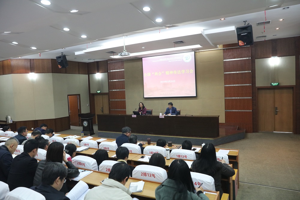 理工要闻 首页 > 理工要闻 > 正文 我校召开全国两会精神传达学习会 作者:党委宣传部日期:2019-03-26浏览: 3月25日下午,我校在行政楼二楼报告厅举行全国两会精神传达学习会。全国人大代表、浙江金融职业学院院长郑亚莉校友为参加学习会的校院两级理论学习中心组成员、各民主党派和统战团体负责人等传达了 两会精神。会议由党委书记吴锋民主持。 郑亚莉认为,刚刚结束的十三届全国人大二次会议是一次坚定信心、聚焦发展、追梦前行的大会,是一次发扬民主、集思广益、务实开放的大会,是一次纪律严明、要求严格、风清气正的大会。她介绍了会议的基本情况和浙江代表团的履职情况,传达了习近平总书记关于国际国内形势、关于人大工作、关于开好全国两会等重要讲话,传达了习近平总书记在参加内蒙古代表团、甘肃代表团、河南代表团、福建代表团审议时讲话的主要精神,传达了韩正副总理、王晨副委员长在参加浙江代表团审议时对浙江的肯定和期许。她回顾了会议关于政府工作报告、全国人大常委会工作报告、国家发改委和财政部分别提交的计划报告与预算报告、最高人民法院工作报告、最高人民检察院工作报告、外商投资法等审议情况,着重阐述了在审议过程中代表们重点关注的“最多跑一次”改革、实施区域协调发展战略、加强生态环境保护等议题。作为民建浙江省委员会第九届委员会副主任委员,郑亚莉还介绍了全国政协十三届二次会议的有关情况和自己提交全国人大会议的建议情况。 吴锋民认为,郑亚莉结合自身参会和履职情况,为大家做了一场解读全面、图文并茂、内容生动的两会报告。他希望广大干部教师深刻领会、全面把握两会的重要意义和精神实质,将两会精神的贯彻落实与刚刚召开的全省教育大会、与学校第三次党代会精神的学习紧密结合起来,与推进本年度的各项工作紧密结合起来,进一步明确工作重点,完善工作部署,抓好工作落实。