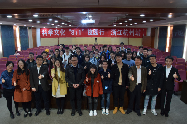 科学文化“8+1”校园行活动是由中国科协科学技术传播中心、“8+”名人故居纪念馆联盟主办的。“8+”是指8家历史文化名人馆,包括宋庆龄故居、鲁迅博物馆、郭沫若纪念馆、茅盾故居、徐悲鸿纪念馆、李四光纪念馆等8家经中央宣传部批准建设,以纪念宋庆龄、李四光、郭沫若、鲁迅等历史文化名人的纪念馆。“1”是指中国科协组建的科学家精神巡回报告团。在本次浙江站活动中,8家名人馆将以“与共和国同命运”为主题,推出8位名人与共和国风雨同舟、荣辱与共的主题展览,将观众的思绪带回上世纪中叶,让人们感悟先辈们的家国情怀、奋斗精神,激励人们前仆后继,投身中华民族伟大复兴的历史大业当中。目前展览已在杭州低碳科技馆举行。本次活动是科学文化“8+1”校园行浙江站的首次活动。