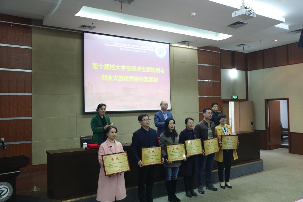 许慧霞宣读了表彰文件,与会领导分别对第十届职业生涯规划大赛优秀组织奖、2018年度就业创业先进集体、先进个人予以表彰。服装学院和机械与自动控制学院分别进行了就业创业工作经验交流。