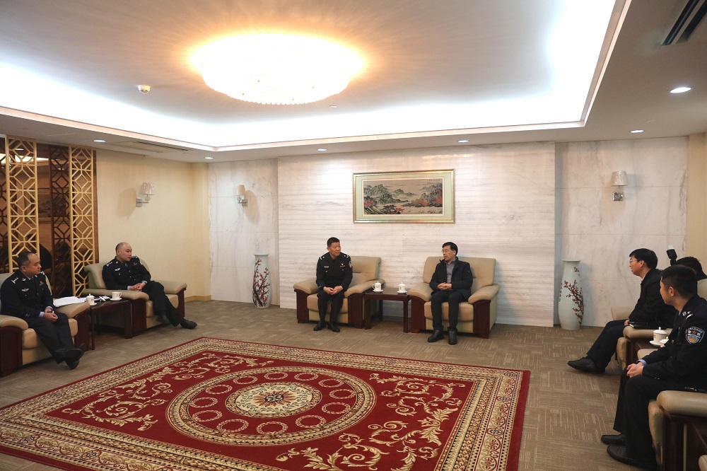 调研会前,校党委书记吴锋民在304会议室热情接待了来宾一行,对来宾的到访表示热烈的欢迎,并感谢公安机关多年来对我校安全稳定工作的悉心指导和大力支持。