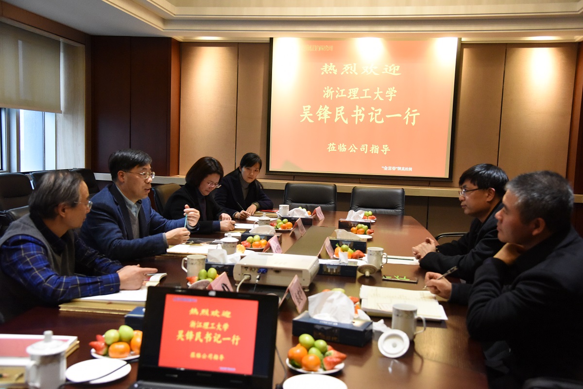 1月16日,校党委书记吴锋民在党校办、校友办和材纺学院负责人的陪同下走访了金富春集团。