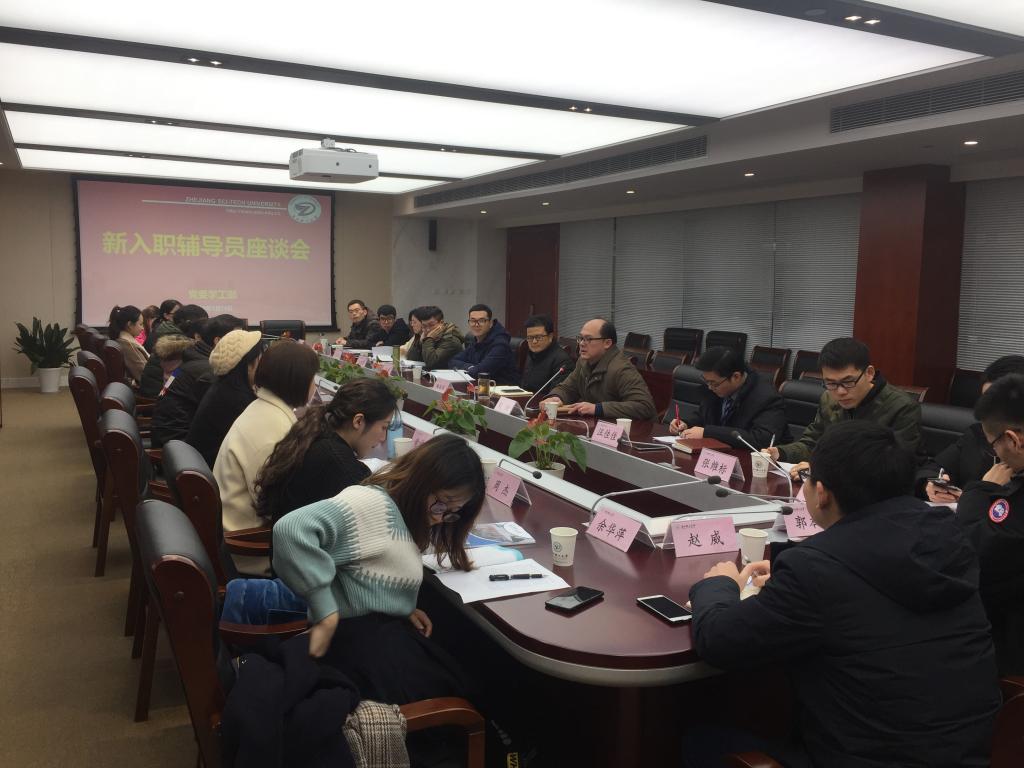 1月14日下午,我校新入职辅导员座谈会在行政楼215举行。校党委副书记陶伟华、党委学工部部长胡琦出席会议,我校2018年新入职的全体辅导员参加了座谈会。