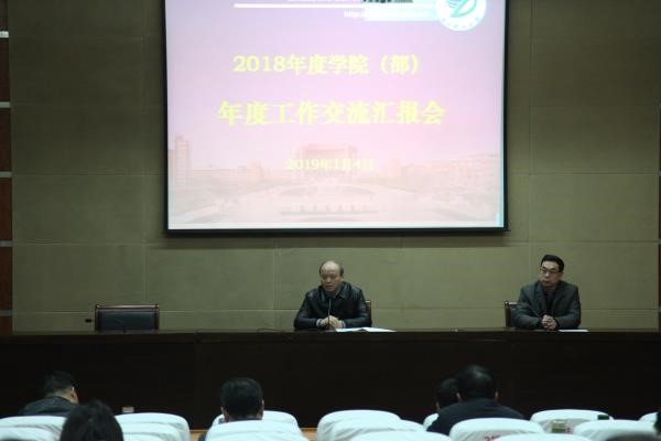 1月3日和1月4日,我校举行各学院(部)、机关部门、直属单位、经营服务机构2018年度工作交流汇报会。全体校领导、全校中层干部、教代会代表、职员代表参加了会议。会议由副校长郜正荣主持。