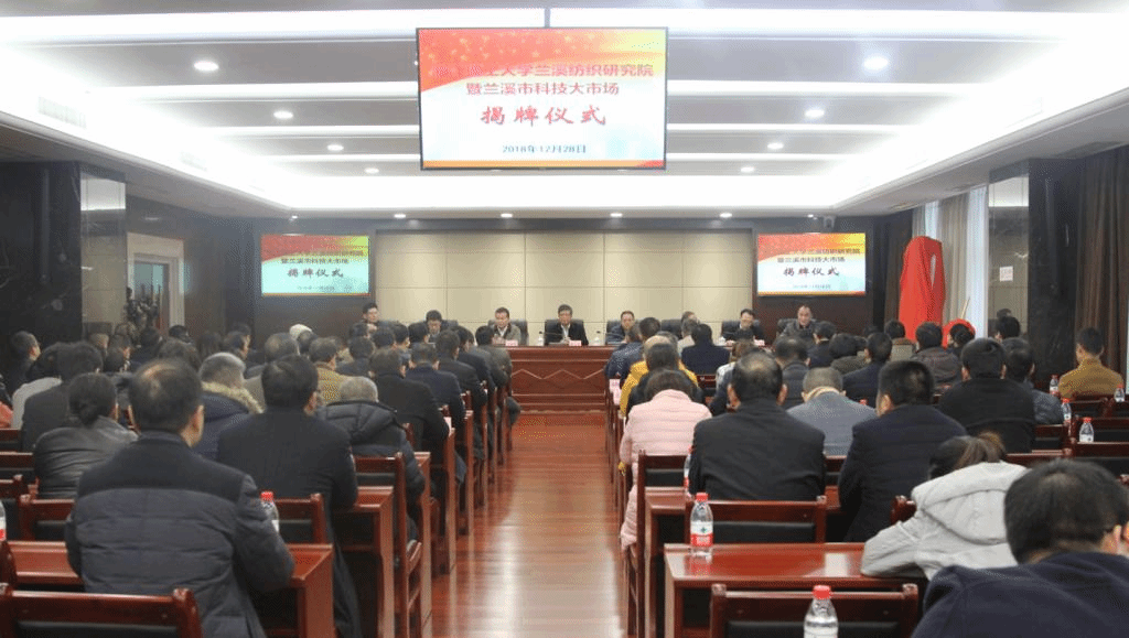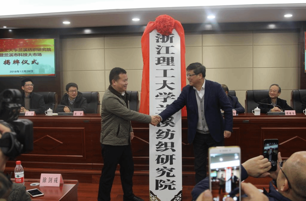 12月28日上午,tyc33455cc太阳集团成网官方入口兰溪纺织研究院揭牌成立。兰溪市委副书记、代市长王新锋,市委常委、副市长孙涛, 我校副校长陈文华, 科研院、材纺和经管等学院相关负责人、专家参加揭牌仪式。