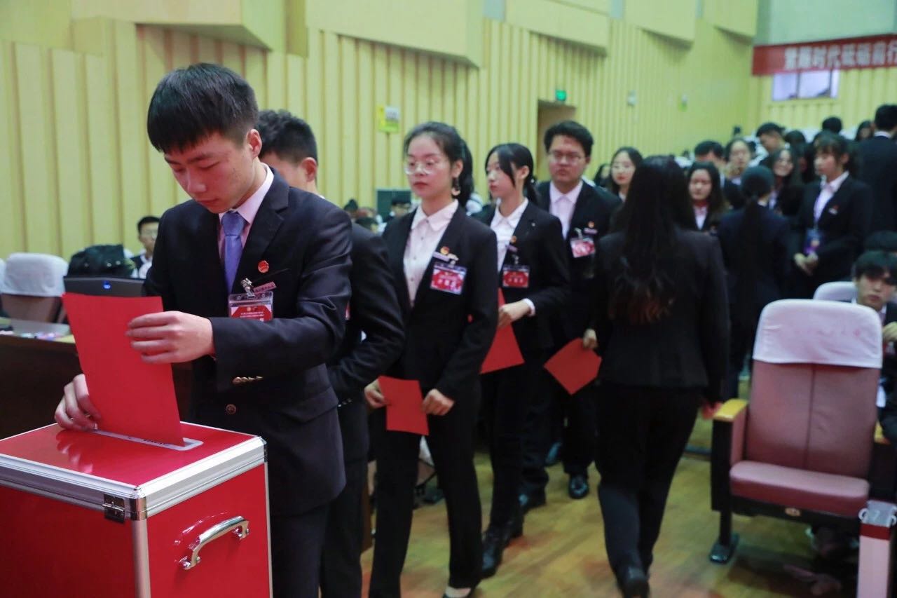 与会代表们听取并审议通过了校学生会主席陈彦容代表第四届学生委员会所作的《工作报告》和校研究生会主席徐飞翔代表第一届研究生委员会所作的《工作报告》,同时以无记名投票方式选举产生了tyc33455cc太阳集团成网官方入口第五届学生委员会、tyc33455cc太阳集团成网官方入口第二届研究生委员会。在随后召开的tyc33455cc太阳集团成网官方入口第五届学生委员会、第二届研究生委员会第一次全体会议上,选举产生了tyc33455cc太阳集团成网官方入口第五届学生委员会常任代表、第二届研究生委员会常任代表。选举吴霁乐为校学生会秘书长,陈彦容为校学生会主席,王天歌、丁欣怡、叶俊岑、兰天牧云、吴洁、吴德尧为校学生会副主席;选举赵凯鹏为校研究生会秘书长,徐飞翔为校研究生会主席,刘野、郑秀文、彭志康、程睿珊为校研究生会副主席。