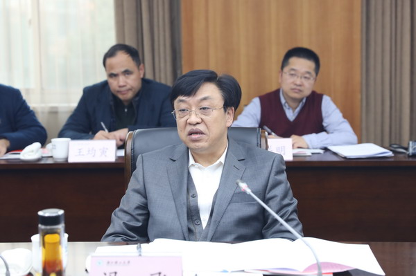 校长陈文兴从科技创新、社会服务、人才培养等三个方面汇报了学校创新发展的情况,提出了学校今后加强“创新强省”工作的设想:一是着力推进特色化、区域化和国际化的“三化”战略;二是着力培养高素质的创新创意创业“三创”人才;三是着力促进专业企业行业“三业”融通。