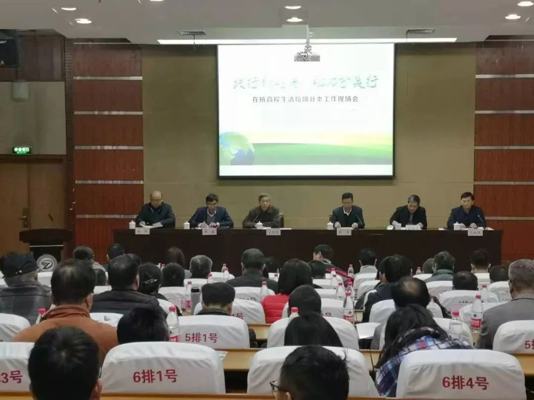 12月7日下午,“践行新时尚 助力分类行”——在杭高校生活垃圾分类管理工作现场会在我校二楼报告厅举行。浙江省教育厅副厅长丁天乐,浙江省住建厅副厅长张奕,杭州市城管委党委书记、主任李磊,杭州市城管委副主任彭保华、杭州经济技术开发区党工委委员、管委会副主任俞斌出席会议,在杭高校相关工作负责人、杭州市各县(区、市)城管住建局负责人及我校垃圾分类管理工作领导小组成员单位负责人、学生代表共计两百余人参加了此次现场会,会议由副校长王剑俊主持。