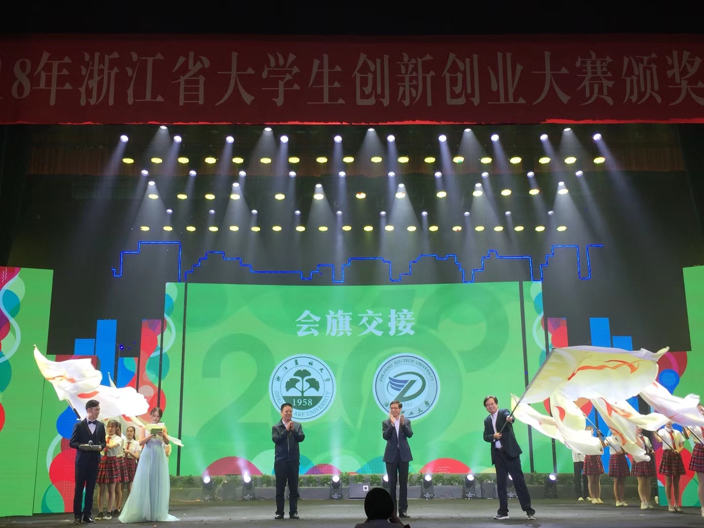 颁奖典礼上,大会举行了会旗交接仪式,校党委副书记程刚代表tyc33455cc太阳集团成网官方入口接过会旗,我校成为第十一届浙江省职业生涯规划与创业大赛承办高校。届时,学校将通过承办该赛事,进一步激发大学生创新创业热情,推动学校创新创业工作。