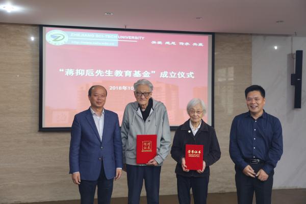 周文龙介绍了“蒋抑卮先生教育基金”的基本情况。早在1985年,蒋世承先生就代表蒋氏家族向我校丝绸工程系捐赠了3万元并设立了“蒋海筹、蒋抑卮丝绸奖学基金”。该奖学金主要用于奖励丝绸、纺织专业学生在企业学习调研、实习实践中的表现突出者,以及他们的优秀调研论文和调研报告。今年9月11日,蒋世承先生和夫人程涓女士拿出毕生积蓄100万元,以父亲的名义设立了“蒋抑卮先生教育基金”,用于鼓励和表彰我校一线优秀教师,并将这份对教育事业关心关爱的情怀延续下去。