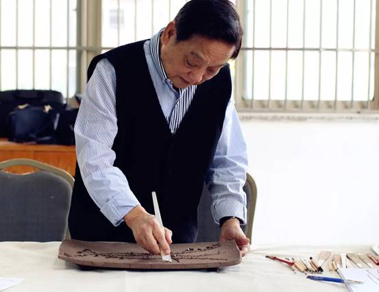 对于韩美林的刻盘艺术,其博士生、我校陶艺工作室负责人熊开波老师感触良深:韩美林老师常年写字画画,锻炼出了雄浑厚重的腕力,才能打破纸笔和刀土的界限,将书法和绘画技巧运用到刻盘中,随心所欲地在陶瓷艺术中呈现出书画水墨酣畅、线条潇洒的美感。亲眼目睹这些神奇作品的诞生,我校艺术与设计学院的学生们激动地表示,韩美林大师艺术造诣精湛,且平易近人。能够亲眼看到大师的创作,是非常难得的学习机会,这样近距离的接触让他们看到了艺术家埋头苦干的“工匠”精神。